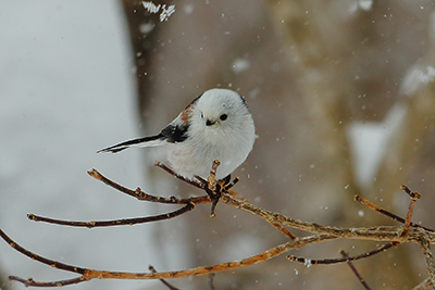 シマエナガはアイヌ語で「ウパシチリ」という雪鳥の意味があり、雪の妖精の愛称を持つ。世界中に分布するエナガの一種だが、その名の通り真っ白い毛で覆われているのは北海道に生息するもののみだ。特に山本さんが魅力を感じているのは、見た目の愛らしさからは想像できないキャラクターだ。